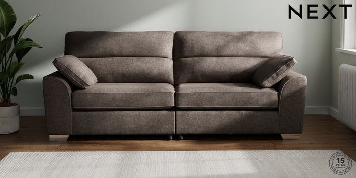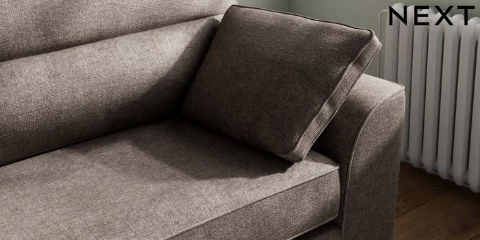 7.2.10 Buy Stamford Highback 4 Seater Sofa Plush Chenille Mink Brown Large Square Angle - Chrome Metal from the Next UK online shop Click here to use our accessible website