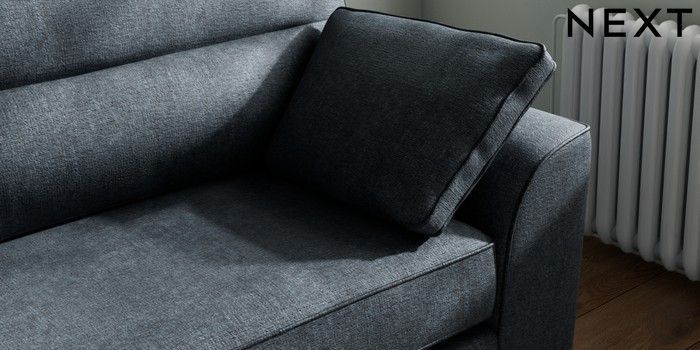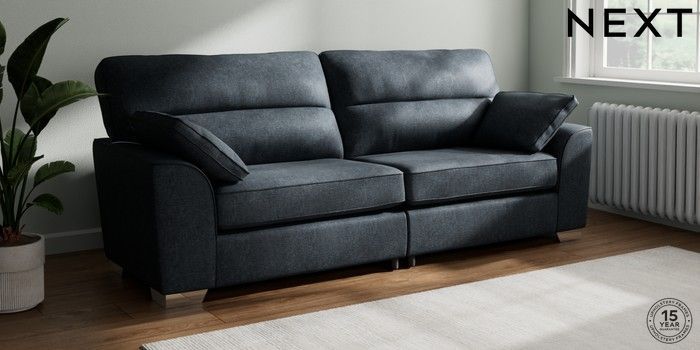 7.2.10 Buy Stamford Highback 4 Seater Sofa Plush Chenille Slate Blue Large Square Angle - Chrome Metal from the Next UK online shop Click here to use our accessible website