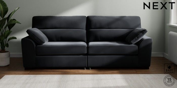 7.3.1 Buy Stamford Highback 4 Seater Sofa Plush Velvet Easy Clean Charcoal Grey Large Square Angle - Dark from the Next UK online shop Click here to use our accessible website