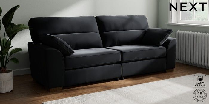 7.3.1 Buy Stamford Highback 4 Seater Sofa Plush Velvet Easy Clean Charcoal Grey Large Square Angle - Mid from the Next UK online shop Click here to use our accessible website