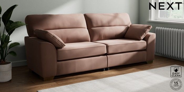 7.3.1 Buy Stamford Highback 4 Seater Sofa Plush Velvet Easy Clean Mid Natural Large Square Angle - Brushed Brass from the Next UK online shop Click here to use our accessible website