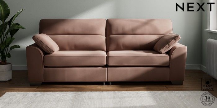 7.3.1 Buy Stamford Highback 4 Seater Sofa Plush Velvet Easy Clean Mid Natural Large Square Angle - Gunmetal from the Next UK online shop Click here to use our accessible website