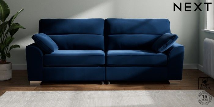 7.2.6 Buy Stamford Highback 4 Seater Sofa Plush Velvet Easy Clean Navy Blue Large Square Angle - Chrome Metal from the Next UK online shop Click here to use our accessible website