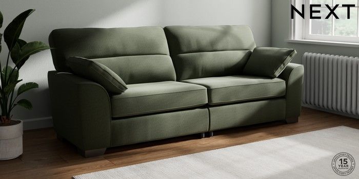 7.3.1 Buy Stamford Highback 4 Seater Sofa Relaxed Linen Look Dark Green Large Square Angle - Gunmetal from the Next UK online shop Click here to use our accessible website