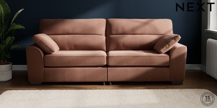 7.3.1 Buy Stamford Highback 4 Seater Sofa Relaxed Linen Look Light Rust Brown Large Square Angle - Gunmetal from the Next UK online shop Click here to use our accessible website