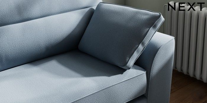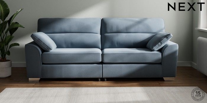 7.2.10 Buy Stamford Highback 4 Seater Sofa Relaxed Linen Look Mid Blue Large Square Angle - Chrome Metal from the Next UK online shop Click here to use our accessible website