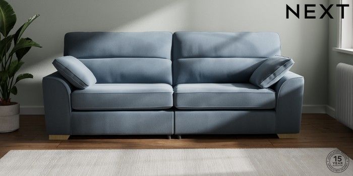 7.2.10 Buy Stamford Highback 4 Seater Sofa Relaxed Linen Look Mid Blue Large Square Angle - Light from the Next UK online shop Click here to use our accessible website