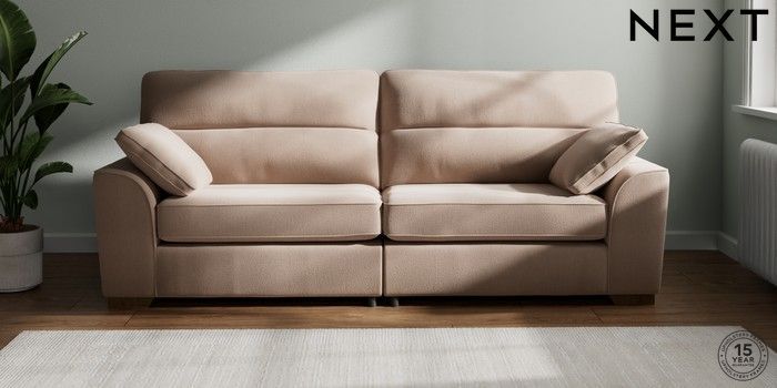 7.2.10 Buy Stamford Highback 4 Seater Sofa Relaxed Linen Look Mid Natural Large Square Angle - Mid from the Next UK online shop Click here to use our accessible website