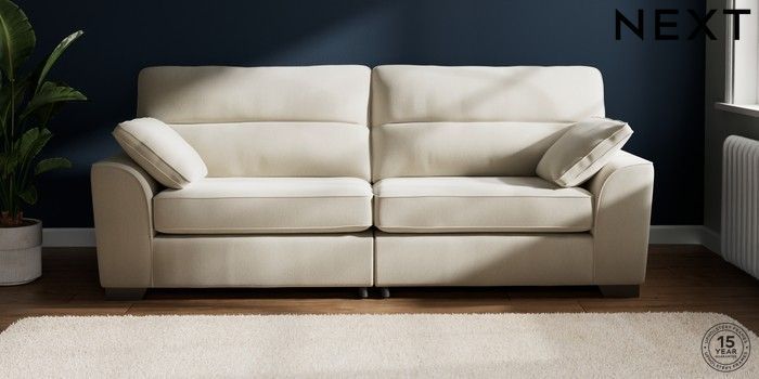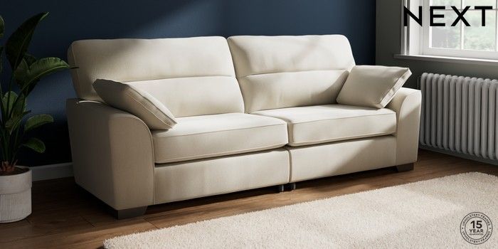 7.3.1 Buy Stamford Highback 4 Seater Sofa Relaxed Linen Look Oyster Large Square Angle - Gunmetal from the Next UK online shop Click here to use our accessible website