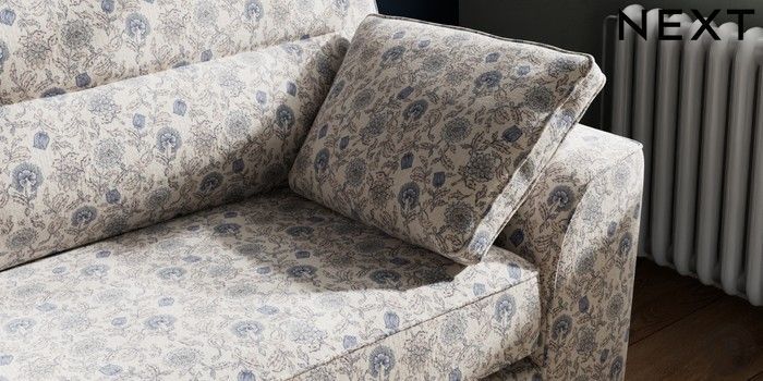 7.3.1 Buy Stamford Highback 4 Seater Sofa Relaxed Linen Look Print Woodblock Floral Blue Large Square Angle - Dark from the Next UK online shop Click here to use our accessible website