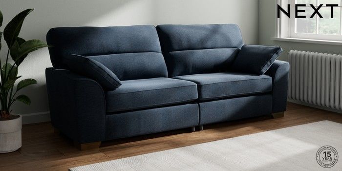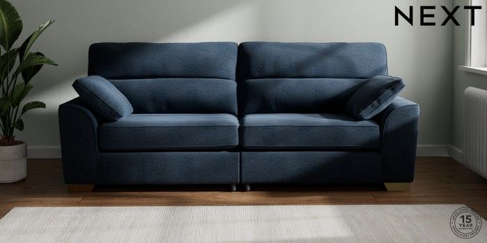 7.2.6 Buy Stamford Highback 4 Seater Sofa Ripple Chenille Dark Blue Large Square Angle - Brushed Brass from the Next UK online shop Click here to use our accessible website
