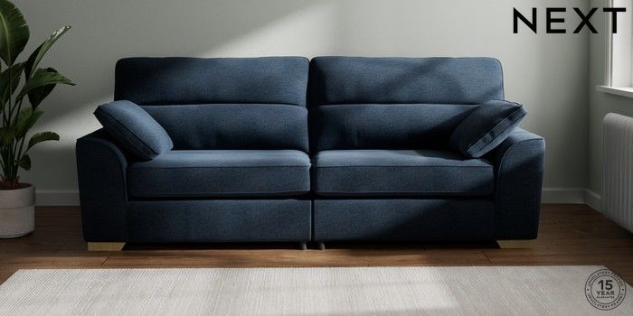 6.12.1 Buy Stamford Highback 4 Seater Sofa Ripple Chenille Dark Blue Large Square Angle - Light from the Next UK online shop Click here to use our accessible website