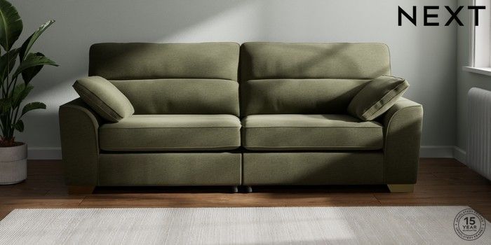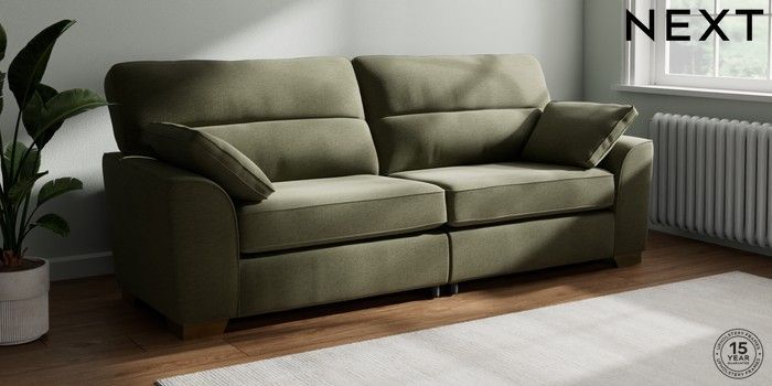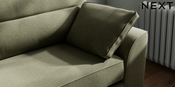 7.2.10 Buy Stamford Highback 4 Seater Sofa Ripple Chenille Mid Moss Green Large Square Angle - Brushed Brass from the Next UK online shop Click here to use our accessible website