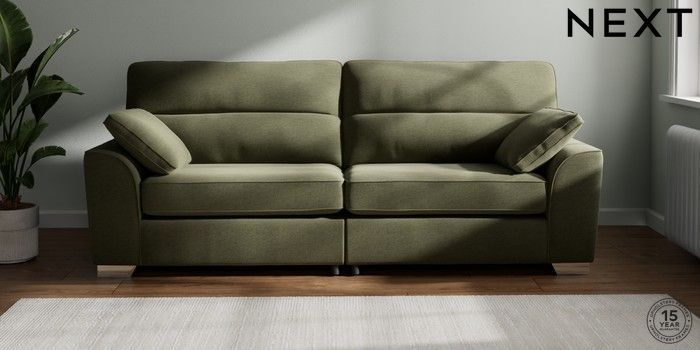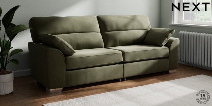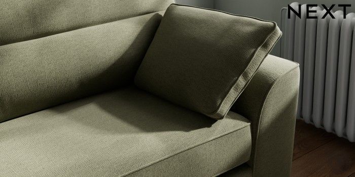 7.2.10 Buy Stamford Highback 4 Seater Sofa Ripple Chenille Mid Moss Green Large Square Angle - Chrome Metal from the Next UK online shop Click here to use our accessible website