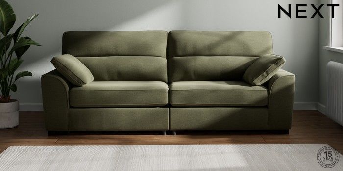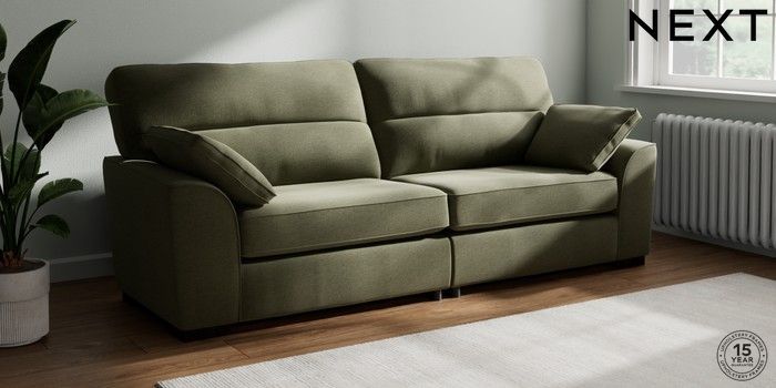 7.2.10 Buy Stamford Highback 4 Seater Sofa Ripple Chenille Mid Moss Green Large Square Angle - Dark from the Next UK online shop Click here to use our accessible website
