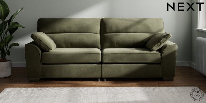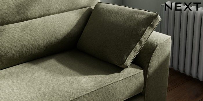 7.2.10 Buy Stamford Highback 4 Seater Sofa Ripple Chenille Mid Moss Green Large Square Angle - Gunmetal from the Next UK online shop Click here to use our accessible website