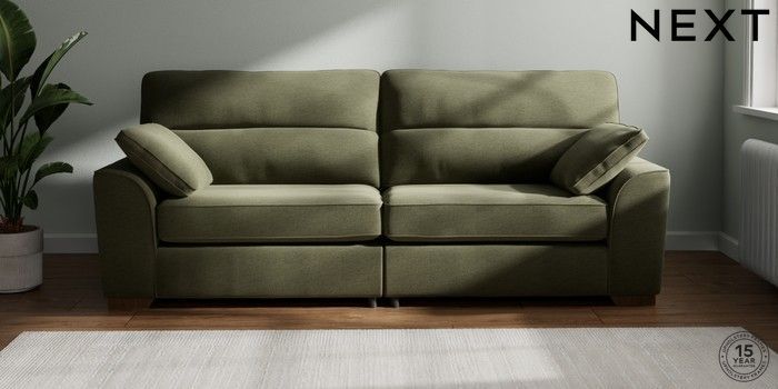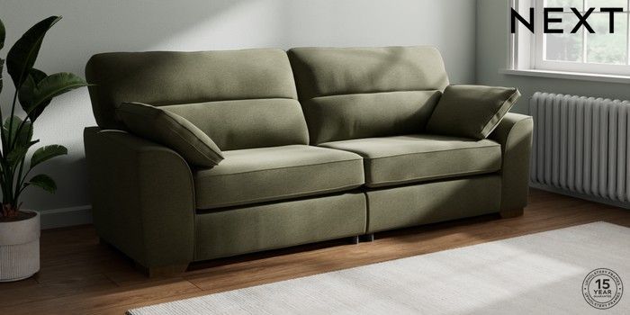7.2.10 Buy Stamford Highback 4 Seater Sofa Ripple Chenille Mid Moss Green Large Square Angle - Mid from the Next UK online shop Click here to use our accessible website