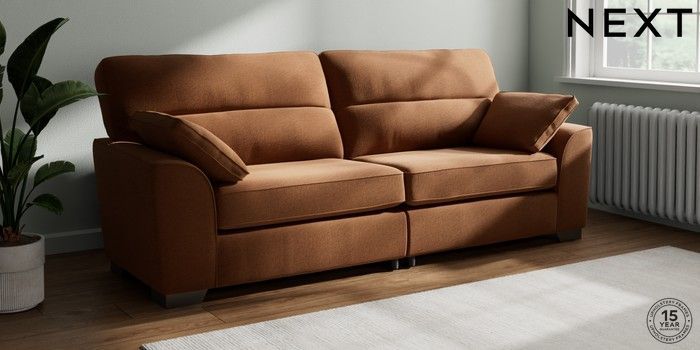 7.2.10 Buy Stamford Highback 4 Seater Sofa Ripple Chenille Mid Rust Brown Large Square Angle - Gunmetal from the Next UK online shop Click here to use our accessible website