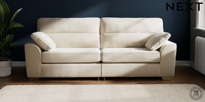 7.2.10 Buy Stamford Highback 4 Seater Sofa Ripple Chenille Oyster Large Square Angle - Brushed Brass from the Next UK online shop Click here to use our accessible website
