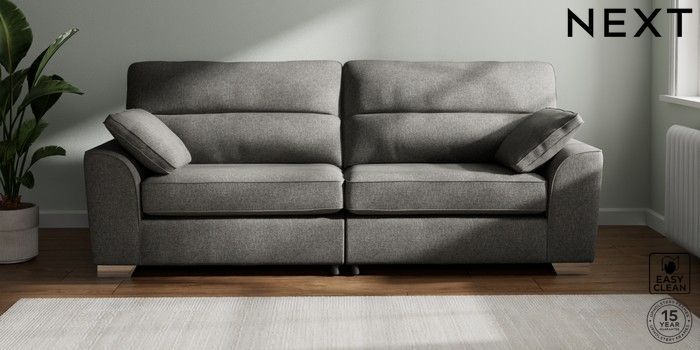 7.3.1 Buy Stamford Highback 4 Seater Sofa Tweedy Blend Easy Clean Dark Grey Large Square Angle - Chrome Metal from the Next UK online shop Click here to use our accessible website