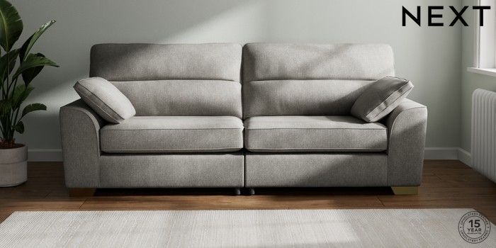 7.2.6 Buy Stamford Highback 4 Seater Sofa Tweedy Chenille Mid Grey Large Square Angle - Brushed Brass from the Next UK online shop Click here to use our accessible website