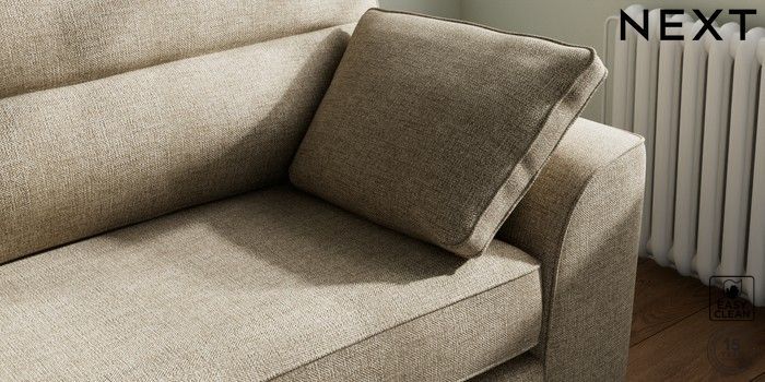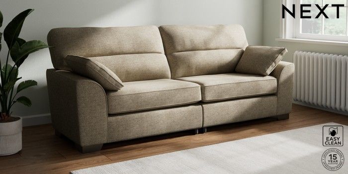 7.3.1 Buy Stamford Highback 4 Seater Sofa Woven Chenille Easy Clean Mid Natural Large Square Angle - Gunmetal from the Next UK online shop Click here to use our accessible website