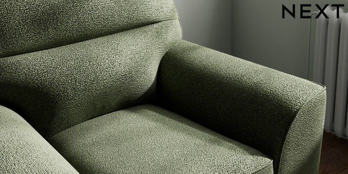 7.3.1 Buy Stamford Highback Armchair Boucle Chenille Dark Moss Green Square Angle - Brushed Brass from the Next UK online shop Click here to use our accessible website