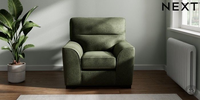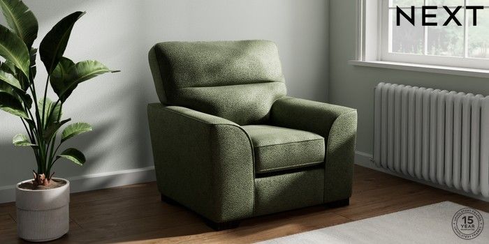 7.2.10 Buy Stamford Highback Armchair Boucle Chenille Dark Moss Green Square Angle - Dark from the Next UK online shop Click here to use our accessible website
