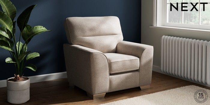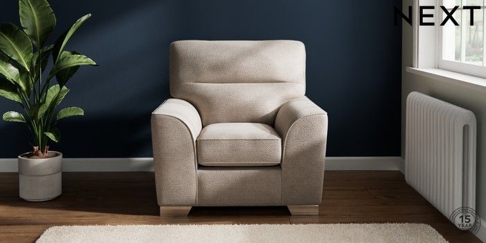 7.3.1 Buy Stamford Highback Armchair Boucle Chenille Light Natural Square Angle - Chrome Metal from the Next UK online shop Click here to use our accessible website