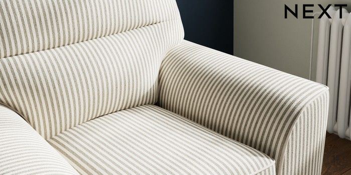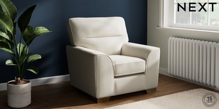 7.3.1 Buy Stamford Highback Armchair Chenille Stripe Moss Green Square Angle - Brushed Brass from the Next UK online shop Click here to use our accessible website