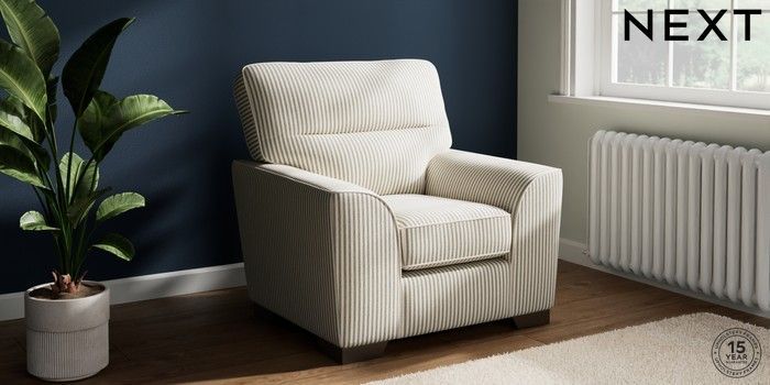 7.3.1 Buy Stamford Highback Armchair Chenille Stripe Moss Green Square Angle - Gunmetal from the Next UK online shop Click here to use our accessible website