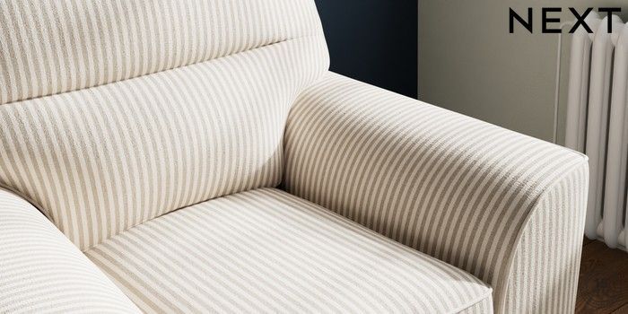 7.3.1 Buy Stamford Highback Armchair Chenille Stripe Natural Square Angle - Gunmetal from the Next UK online shop Click here to use our accessible website