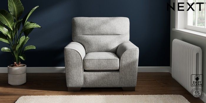 7.2.10 Buy Stamford Highback Armchair Chunky Boucle Easy Clean Light Grey Square Angle - Gunmetal from the Next UK online shop Click here to use our accessible website