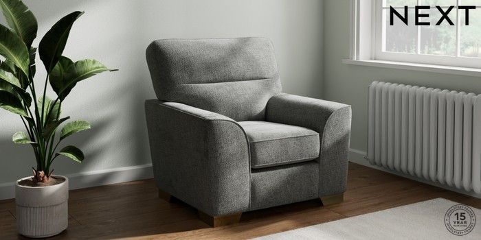 7.2.10 Buy Stamford Highback Armchair Chunky Chenille Dark Grey Square Angle - Brushed Brass from the Next UK online shop Click here to use our accessible website