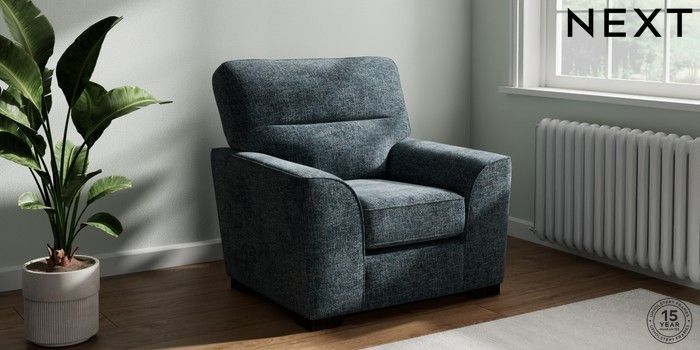 7.2.10 Buy Stamford Highback Armchair Chunky Chenille Dark Navy Blue Square Angle - Dark from the Next UK online shop Click here to use our accessible website
