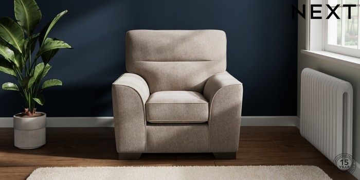 7.2.10 Buy Stamford Highback Armchair Chunky Chenille Light Dove Square Angle - Gunmetal from the Next UK online shop Click here to use our accessible website