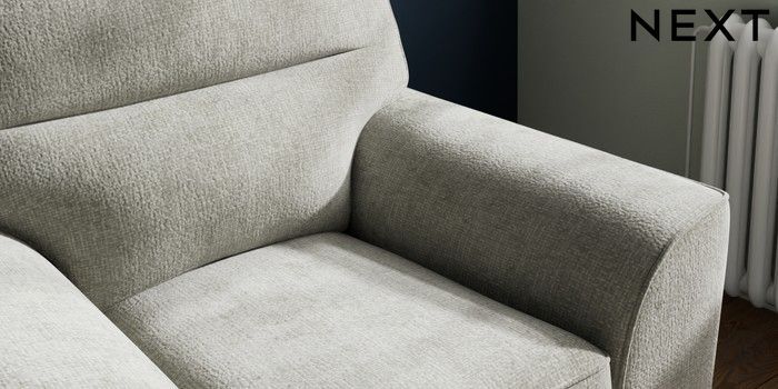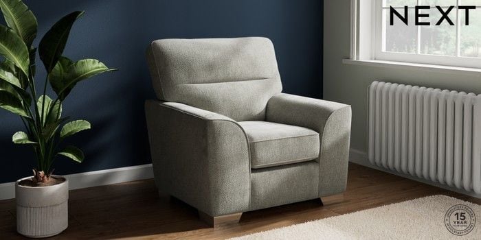 7.2.10 Buy Stamford Highback Armchair Chunky Chenille Light Grey Square Angle - Chrome Metal from the Next UK online shop Click here to use our accessible website