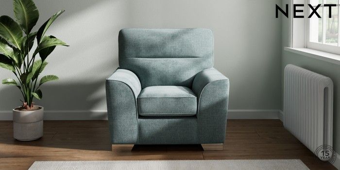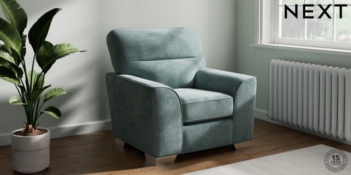 7.3.1 Buy Stamford Highback Armchair Chunky Chenille Light Teal Green Square Angle - Chrome Metal from the Next UK online shop Click here to use our accessible website