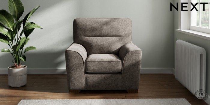 7.2.6 Buy Stamford Highback Armchair Chunky Chenille Mink Brown Square Angle - Mid from the Next UK online shop Click here to use our accessible website