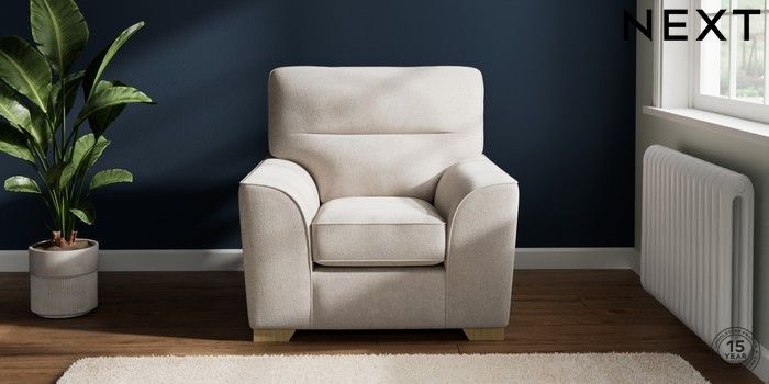 7.2.6 Buy Stamford Highback Armchair Chunky Chenille Oyster Square Angle - Light from the Next UK online shop Click here to use our accessible website