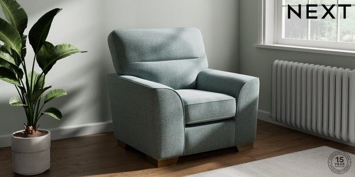 7.2.6 Buy Stamford Highback Armchair Chunky Marl Mid Blue Square Angle - Brushed Brass from the Next UK online shop Click here to use our accessible website