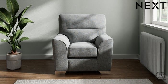 7.2.10 Buy Stamford Highback Armchair Chunky Marl Mid Grey Square Angle - Chrome Metal from the Next UK online shop Click here to use our accessible website