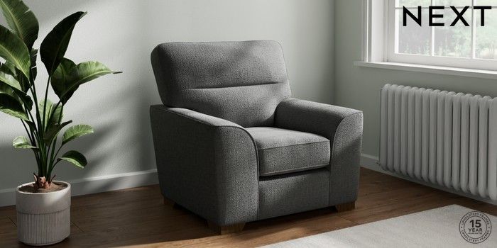 7.2.10 Buy Stamford Highback Armchair Chunky Texture Dark Grey Square Angle - Mid from the Next UK online shop Click here to use our accessible website