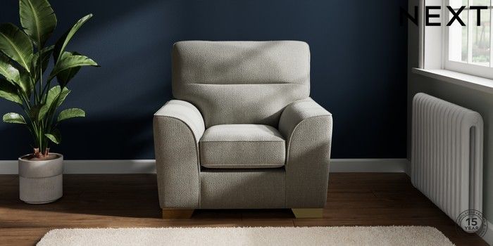 7.2.10 Buy Stamford Highback Armchair Chunky Texture Dove Square Angle - Brushed Brass from the Next UK online shop Click here to use our accessible website