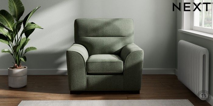 7.2.10 Buy Stamford Highback Armchair Chunky Texture Mid Forest Green Square Angle - Dark from the Next UK online shop Click here to use our accessible website