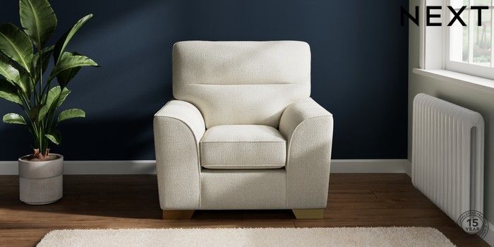 7.2.10 Buy Stamford Highback Armchair Chunky Texture Oyster Square Angle - Brushed Brass from the Next UK online shop Click here to use our accessible website