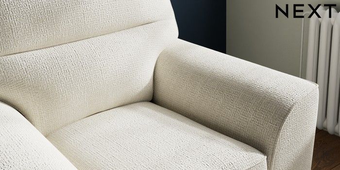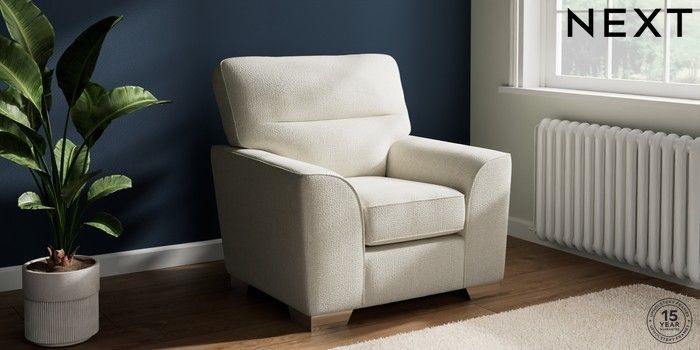 7.2.10 Buy Stamford Highback Armchair Chunky Texture Oyster Square Angle - Chrome Metal from the Next UK online shop Click here to use our accessible website