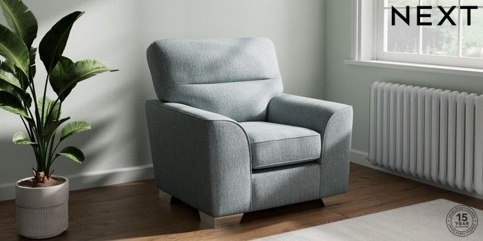 7.2.10 Buy Stamford Highback Armchair Chunky Weave Mid Blue Square Angle - Chrome Metal from the Next UK online shop Click here to use our accessible website