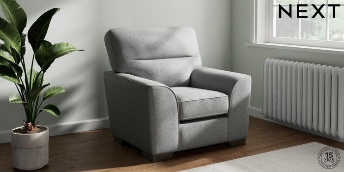7.2.10 Buy Stamford Highback Armchair Chunky Weave Mid Grey Square Angle - Gunmetal from the Next UK online shop Click here to use our accessible website