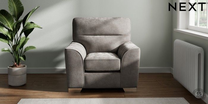 7.3.1 Buy Stamford Highback Armchair Distressed Velour French Grey Square Angle - Chrome Metal from the Next UK online shop Click here to use our accessible website